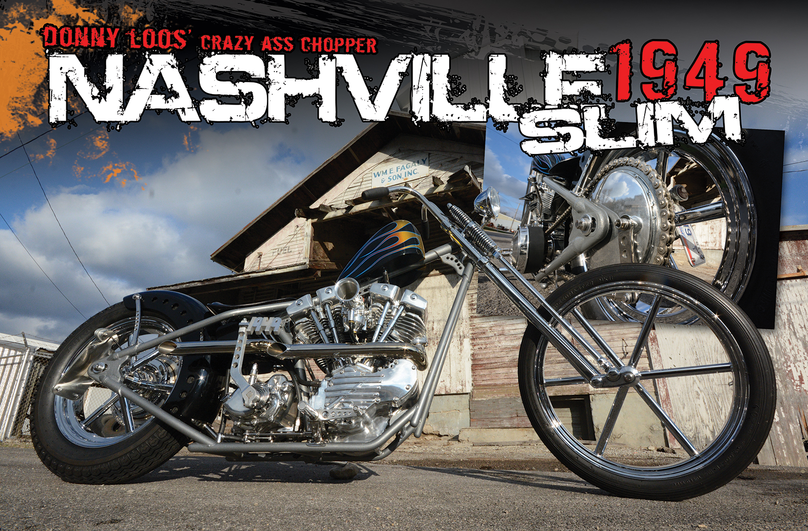 In the world of custom motorcycle builders there are several categories of people you will find. There are the old guard that have been doing it since the seventies and still blow peoples minds with their work. There are the flash in the pan guys that come out with a bike or two and that’s all you ever hear from them. Then there are the guys who have always done their thing, they come in and out of the limelight several times in their careers and it would seem, to them, that they could care less. The work is what they care about and the day to day battles they win in pushing the envelope. This is the man you’ll find when you get to know the builder of this month’s cover bike, Donny Loos. I’ve been lucky enough to know Donny longer than either of us care to remember and I have always been a fan of his work. With motors he is a mad scientist who builds the kind of mill that produces shit eating grins. When it comes to the custom builds he puts out Donny has an old soul. He builds the type of timeless classics that defy trend and span generations of moto-nuts. The last wildly popular build that he produced was for the S&S 50th anniversary celebration. It was an old school build that you would expect to see at the local drag strip back in the seventies. We were lucky enough to carry that bike in these pages and now we are equally honored to bring you his latest creation: Nashville Slim.