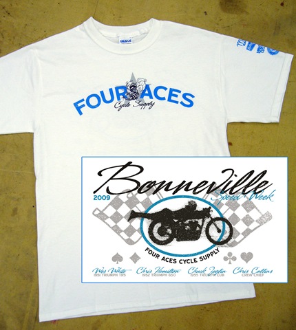 The Four Aces 2009 Bonneville Commemorative shirts are now available. The proceeds from these shirts are used to support the Four