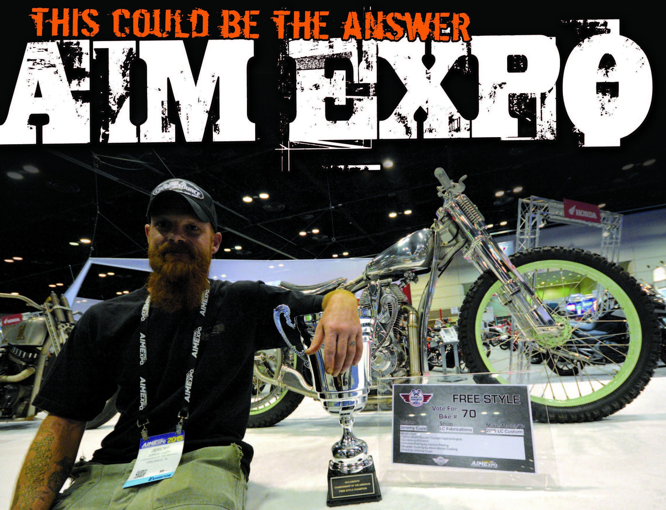 One thing that peeled our skulls back was Standard Motorcycle Company and their plans to open a motorcycle Co-op in Orlando. Just in its infancy while we visited the site, the plan these cats have is against convention and reminiscent of the Shed in Milwaukee. They plan on having a member based shop that will not only house the tools you need to come in and work on your projects but will also give paid members access to industry experts who will help with projects and some that will come in for special seminars on everything from fabrication to tooling. It’s a killer idea and we wait with baited breath to bring you more info on it as soon as they are read to release it. One of the main features for the custom world at the AIM Expo is the bike show itself. The winner of the Freestyle Class, Jeremy Cupp of LC Fabrications, took home the big prize and the right to represent America in the AMD World Championships in Cologne Germany. We caught up with Jeremy just after he was announced as the winner and man, just like he always does, he let his feet stay grounded and was nothing but gracious.