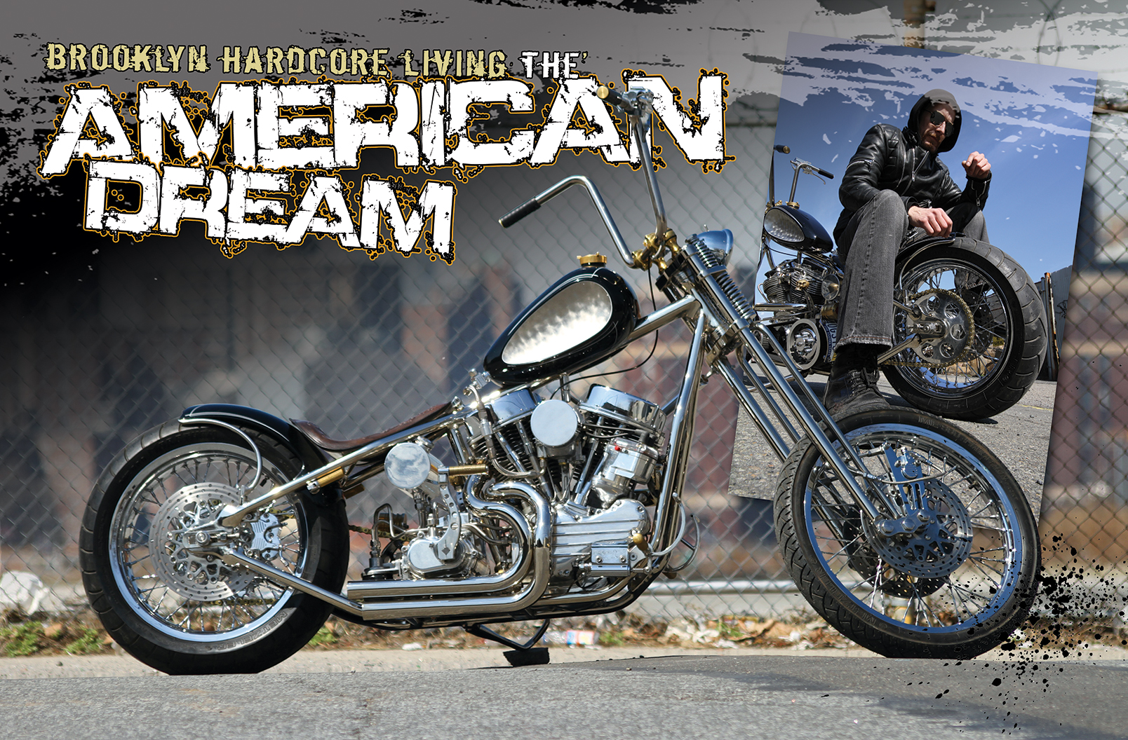 As another side note, while he was living in Brooklyn, he stayed 3 blocks away from Gasoline Alley and even though he didn’t know it then, one of his largest influences was just down the street. That’s right my friends, Indian Larry and the boys were in his backyard. For years he would see these sickass, ultimately rideable machines that could conquer the roads of NYC, rolling out of that shop. After many years of working on the Sporty, it was time to do something a little different so it hit the sale’s block to begin funding the creation you see on these pages. First thing Iliya needed was a motor. Being a fan of going fast and of old American iron, he decided to find a real Pan motor. Once he did, he gave it to Paul Cox to build it and make it as bulletproof as possible. As always, Paul being the best at everything he strives to do, the motor came out beautiful and it hums like a top. Not a big surprise considering the fact that his attention to detail is second to none. Iliya also put his two cents in and worked some unbelievable details into the mix like the all stainless plumbing and the slick oil return line setups. There are also countless hours of metal work in the way of the fenders, and the tank fit just right.