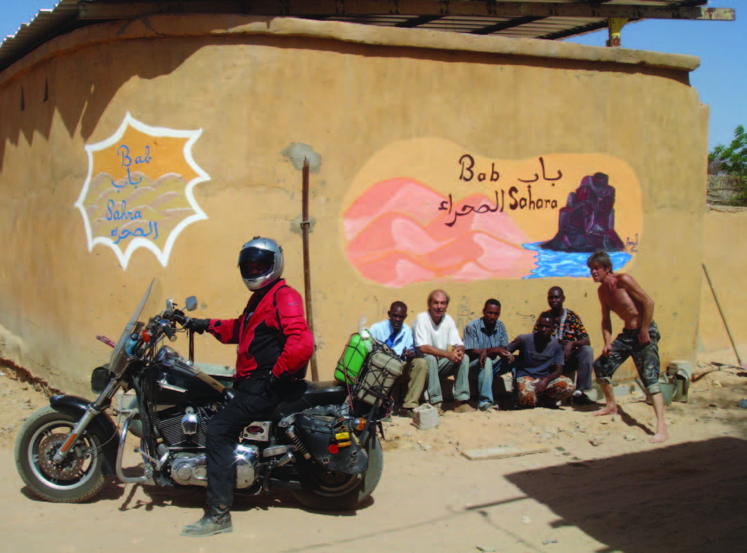 high-pitched sound of a motorcycle engine could be heard outside the wall that surrounded the Auberge Sahara hostel. The night guard opened the large steel doors and the headlight of a dual sport bike lit up the darkness of the hostel courtyard. After parking along the wall next to my Wide Glide and unloading his gear, the rider came up on the porch, looked at me and said, “So, you must be the American I heard was riding a Harley in Mauritania.” Speaking with a thick German accent, he told me his name was Julian and that he had just rode down from Atar. He got caught riding after dark and told me how he had several near misses with traffic crossing Nouakchott looking for the Auberge Sahara. He didn’t say much about where he was going only that he was heading towards Mali in the morning. I said that I had a ten-day transit visa for Mauritania and was heading up to the Atar region in the morning. We talked for a few minutes then Julian went inside to get a room for the night. Atar was three hundred miles to the northeast of the capital. I had only been in the country for a day and had ridden down from the northern border. I thought to myself that news must travel fast around here for him to have heard that I was in the country. The voice in my head said, ‘Bro, that can’t be good.’ Well at least I wasn’t the only westerner riding in Mauritania.