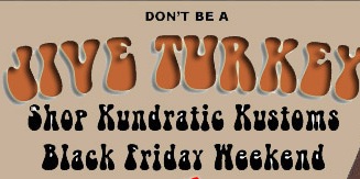 Why wake up and stand in line for Christmas gifts, when you can stay in your warm ass PJ’s and order gifts online. Head over to Kundratic Kustoms to receive 20% off Kundratic Apparel and 10% off Kundratic Hardware.