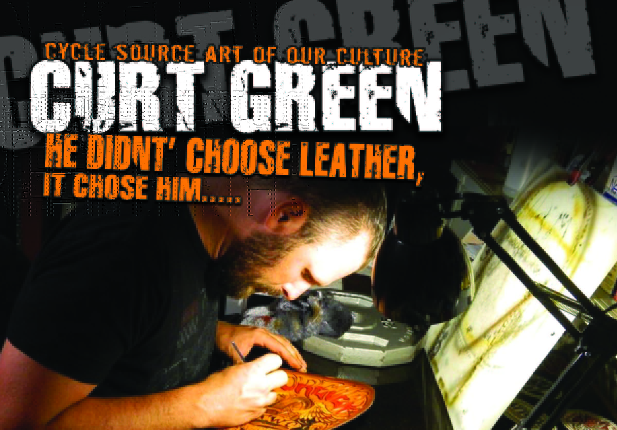 Since his start in the world of leather crafting, Curt has been able to meet and work with all of the people he used to read about in the magazines from the convenience store. “I have always looked up to and was finally able to meet Paul Cox (Paul Cox Industries). He is an amazing leather worker and will strive to be in the same realm as he is one day” Some of the other people he has had the chance to meet include Roadside Marty (“Loudmouth of the industry”), Jeff Cochran (SpeedKing Racing), Sugar Bear (Sugar Bear Choppers), Chris Callen (Cycle Source Mag), and so many more. For him, it is truly humbling that the people he once read about now call him or refer people to him when they need leather work. Of course, like many artists, Curt has his own special way of doing things that sets him apart from the others. In his opinion, the fact that he has such a diverse background in terms of medium helps him to see things differently helps when it comes to making masterpieces for his clients. Though his methods may be viewed as unconventional to some, he loves trying new techniques and isn’t afraid to waste a bit of leather to make things perfect. His background in general art and airbrushing also helps to give each customer a one-ofa- kind piece they can be proud to own for years to come. Curt uses leather to express other people’s visions that sometimes they have a hard time expressing. For him, there is nothing better than hearing the words “this was more than I imagined,” or “I can’t believe you made my vision a reality.”