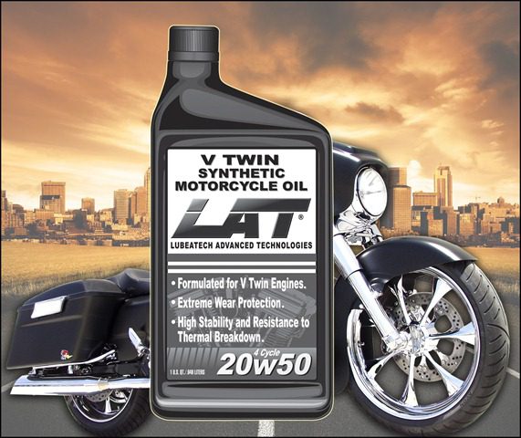 Today’s V-Twin touring motorcycle engines require lubrication capable of addressing excessive load operating temperatures and high performance stress like never before. LAT is blended specifically to meet and exceed these unique requirements. LAT High Performance Full Synthetic Motorcycle oil provides superior levels of wear protection, high stability and exceptional resistance to thermal breakdown. Consisting of group IV and V base oils treated with LAT extreme pressure additive, LFR, the new lubricant provides superior sustained high RPM protection, high flash point and extreme wear protection for maximum horsepower and torque. Additionally during independent tests LAT was shown to provide significant increases in horsepower and torque while reducing running temperatures. For complete details call 888-528-6457 visit the LAT web site at www.latracingoils.com. Dealer inquiries invited.