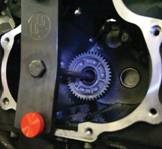 With the parts at the ready, we move on to pulling the main drive gear. Using George’s tool, we set up to remove it from the case. It comes with a mounting plate for the opposite side that gives the leverage to pull the gear from the case.