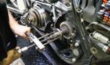 As you slowly apply tension to the remover, you’ll feel as the gear pops loose. The gear then comes out with part of the bearing attached to it.