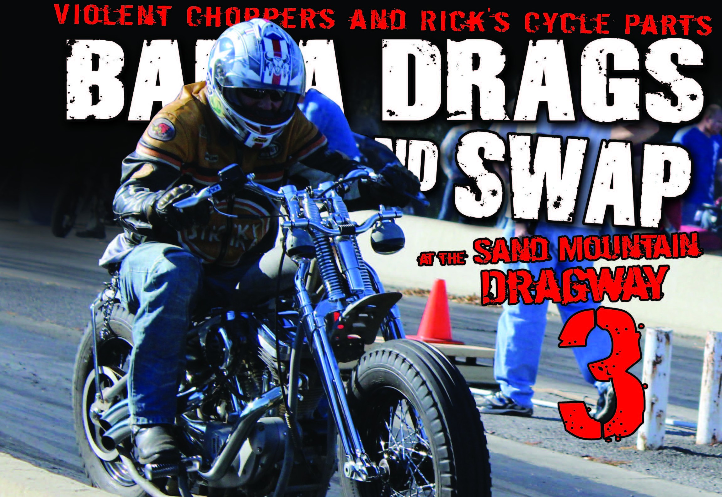 So if you’re looking for a great mix of motorcycle parts as well as vintage car parts, the Bama Swap and Drags is where you want to be. This time around it’s gonna be Easter weekend–March 30th & 31st at the Sand Mountain Dragway in Section, AL. They will provide entertainment all day long with “Run Whatcha Brung” racing. This will mark their 4th time having the event and I for one am not going to miss it! For more info regarding vendor spots or anything else, you can contact Michael Lewis at (256) 630-8129 or visit www.bamaswapanddrag. blogspot.com. Hope to see all of you there!