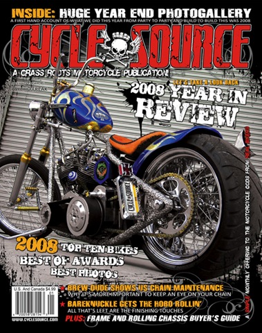 The new issue of Cycle Source Magazine "The Year In Review" is on newsstands today and we wanted to thank everyone who voted in our "Best Of" awards. Over 5,000 votes were counted to name the best of this year from the motorcycle industry and the top ten feature bikes from our pages this year. Also in this issue is a look back at one hell of a year. 2008 may go down as the year "IT" happened in many regards and we did our best to cover the good, the bad and the ugly.