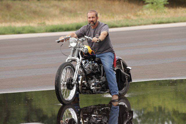 This sweet little pan built by Leonard Rickerman, won our best of show award at the Sturgis Nighttime Chopper Show at Easyrider Saloon. It took the Suckerpunch Sally roller, a Stage 5 Paint Set and a bag full of prizes from Spectro Oils and other sponsors. The cat was happy but not half as much as when he finds out we are putting his first ever bike build on the cover of the Sturgis Issue.