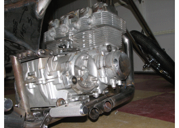Biltwell Rocks! They donated two exhaust kits for Duane’s little creation. Then Duane was lucky enough to have Slim and Alex come over and help out. The three of them scratched themselves for awhile, ate some pizza and then created a beautiful exhaust for the Pink Taco. I am sure that the neighbors are going to love the sound of this beast when she fires. Click on the photo for a peek.