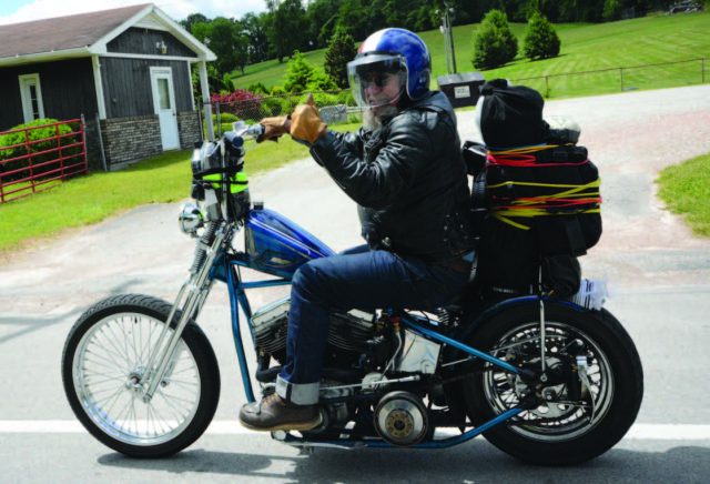 The morning after the backyard banger the actual Gypsy Tour began. We ride from Steel City H-D to Buck’s Indian, which is this super rad vintage bike museum nestled in the rolling hills of Romney, West Virginia, a.k.a. the middle of nowhere. It’s beautiful, but nowhere. After the kickoff party ended we camped out in the grass. As the sun came up people slowly woke and began mulling around the parking lot at Steel City H-D, waiting for the delivery of fresh coffee and donuts from our lord and savior, Dunkin Donuts. Cycle Sources’ newest mascot, Nugget, and I made our rounds, making sure everyone got their good morning kisses and butt wiggles to start the day off right. I met up with my riding buddy, Hammy. We hung out and waited for RJ to sound the alarm, telling us to pack up and gather round. We passed around maps and got the lowdown on the designated lunch stop until the moment arrived. At last we hopped on our motorbikes and started the long and wonderful journey to Big Mountain Run 7. The mountains were cold and the wind was biting, but the views alone and spending time with the people and culture we love was enough to make it all worth it. We stopped around noon and visited Ohiopyle State Park, where Bikers For Christ met us and gave us brown paper bag lunches loaded to the hilt, including pepperoni rolls and plenty of drinks to keep us hydrated. More friends that missed kickstands up at Steel City caught up with us here while we ate and enjoyed the beauty of the Ohiopyle Falls.