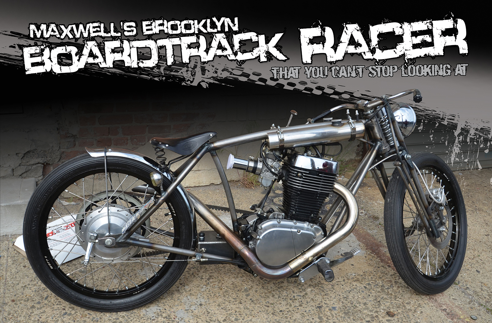 So before long, the 650 Savage was sold to our featured builder here for $900 with only a thousand-miles on it. It’s another one of those sweet deals that I hear about but never seem to find. The rest of this bike was built out of things that Max came across in junkyards and thrift stores like the ice cream scoop that is living its second life as a brake light or the Bar Mitzvah chalice now serving as an air cleaner. Great, now I want a boardtracker. I’ll just grab some chemicals and try to dream about one, ‘cause other than this one, a dream is as close as I’ll get. Well, I’m sure that the candle Chris lit on both ends is about to meet in the middle, so I’d better send this off to him. Plus, I hear a banjo calling my name that desperately needs to be played at top volume this very early morning. I’m bound and determined to give these freaks in this building something strange to ponder every day, and today it will be front patio banjo pickin’ at three a.m. Thanks to Max for sharing this beauty with us, and let’s all hope that he provides us with other things to covet here in the future, ‘cause this is a dude that needs to be building. This kind of eye for detail and vast fabrication experience needs to be exercised by those few that have it, and he’s got both sides of that coin polished to a mirror finish.