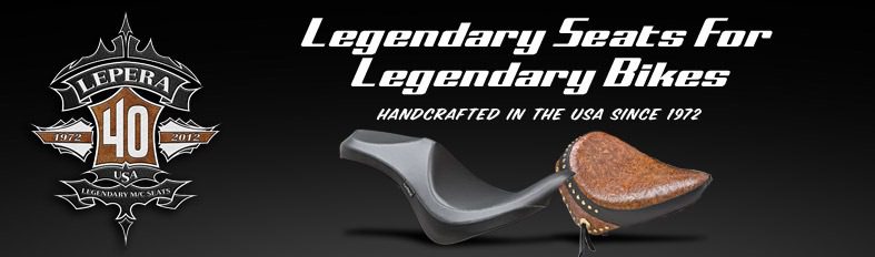 Pictured here, the “BUDDY BOY” spring solos are deep dished with a comfortable, high density-molded foam foundation. Seats come with a black powder coated nose bracket and are offered in 2 styles. The large “BUDDY BOY” (L-106) measures 15” long x 13”wide and the small (L-101) is 13” long x 9 ½” wide. Pricing starts at $169.00 for the large version and $160.70 for the smaller seat. Spring kit is not included. Contact your local dealer or visit www.lepera.com![]()