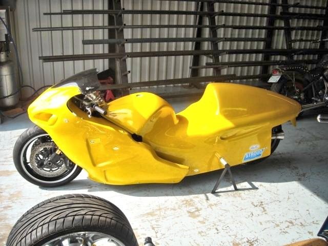 Engineered to hit speeds in excess of 400 mph (640 km/h) during the quarter-mile, the bike was designed and built by Glenn Brittian, one of the few drivers licensed by the National Hot Rod Association to drive a rocket dragster.