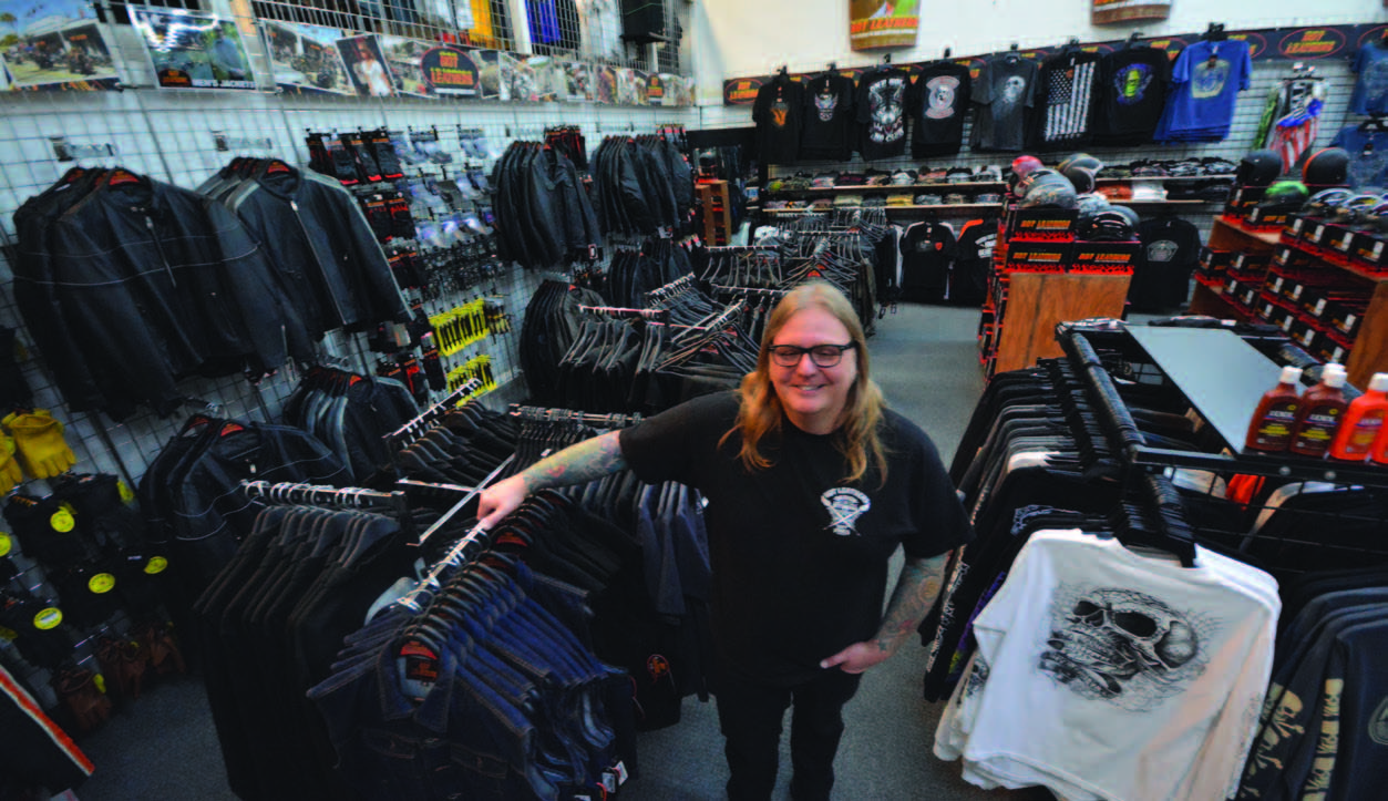 Andy feels that the way they treat their people is a big part of why they have such a strong roster. So much so that he really couldn’t say that they’ve gone through a bunch of poor applicants to find a good crew. On our way through the three massive warehouse buildings that house their operations, we had a good long talk with Andy about the organization of a company with a 300-page catalogue. While there may be some advantage to machines like a robot inventory machine that selects items for orders, to them having the loyalty of the employees is key. To that end, the reason they have three separate buildings in the same industrial park is that instead of moving into one facility that would have taken them off the standard bus lines, making it harder for the employees to get to work, they stayed put. You just don’t hear about companies with consideration like that for their staff. The new leather facility is four miles away in the building that Hot Leathers started in a few decades ago. Within all those separate walls they have their ready to sell inventory, their blanks in one whole warehouse, shipping in another, and printing in still another. Even their catalogue is shot in house with employees as the models. It is a massive operation to say the least. Considering the amount of inventory, it would take to fill the bill just for Sturgis, you can see the reason they will start working on that event in September of the previous year, almost right after the rally ends from the year before.