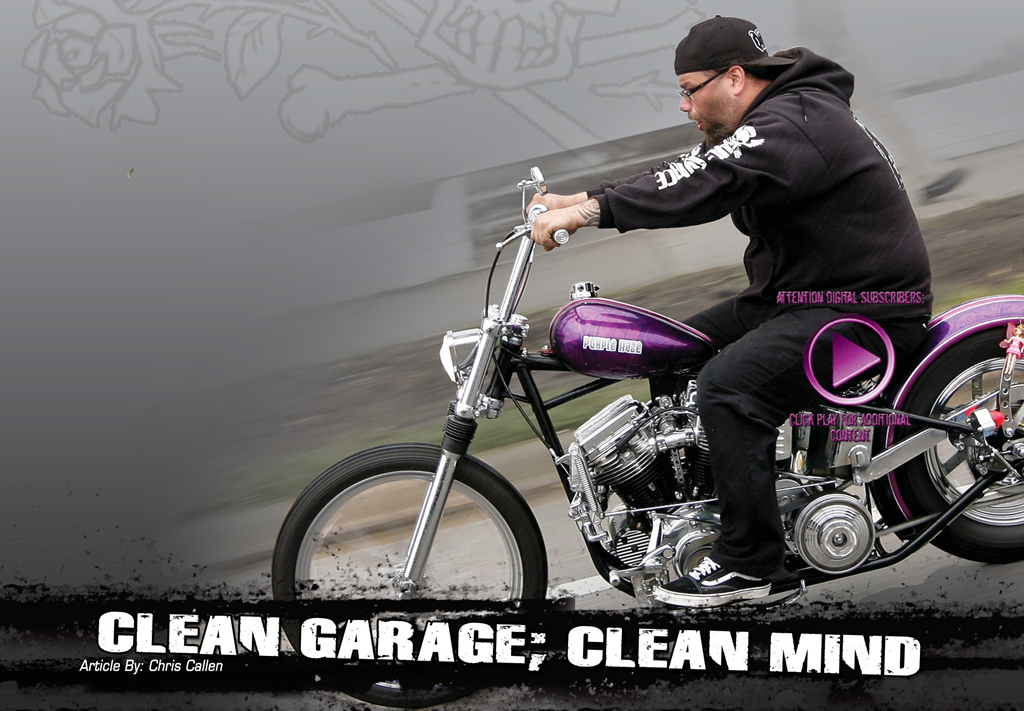 Though I was a young man, I can still remember the times spent in pappy’s shack. There was the working on bikes with my brothers, the tools the old man had collected, the bikes that had been built there, and the stains on the floor from the other family rides that needed an overhaul; in short, it was heaven. Over the years, I have begun to construct my own version of pappy’s shack. I built myself a nice little two-and-a-half car garage and have begun collecting my own tools and getting it in shape. I have a nice bike lift, with the basic tools and now have even started to get serious with the addition of a welder and a furnace with the help of my brother Keith. The only problem is that my life right now is running at warp speed and the time I have to spend in the garage is pretty limited. I use part of the garage as storage for back issues of the magazine and most times I just stack things everywhere in an attempt to get from one place to another or finish deadline. It got so bad this past month that we couldn’t even find a spot for Keith’s new bike to give it a once over.