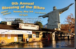 Come celebrate the 9th annual Blessing of the Bikes on Sunday, May 3rd at Cook Corner.Father James of St. Michael’s Abbey will be giving free blessings to all bikes at Cook’s Corner from 10-3pm. A $5 donation is asked of you and you will receives a collectable pin. Join us for Live Music, BBQ and Raffle.