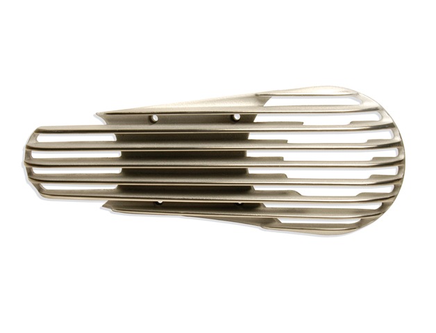 Want to adjust your bike’s attitude and add some old school style? Check out Crime Scene’s Bad Attitude™ Finned Primary Cover. The open fined styling exposes your primary’s belt and pulleys. The Bad Attitude™ cover is offered in two finishes. A satin finish with contrasting, highly polished edges on the fins (as shown) or fully polished to a brilliant finish.