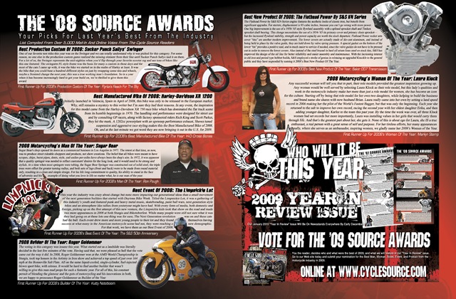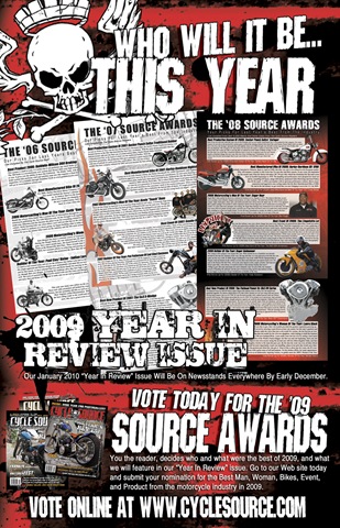 We are proud to announce that the voting for our “Best Of 2009” awards has been opened. Each year Cycle Source devotes our January issue, titled “Year in Review,” to take a look back at the previous year and ask our readers to select their “Best Ofs” from the industry. Over the past month, nominations have been made for the following categories and they are now ready for you to cast your vote.