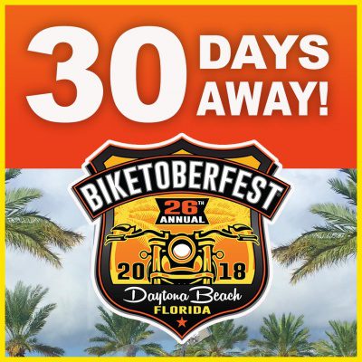 DAYTONA BEACH, Fla. (September 19, 2018) – The Daytona Beach 26th Annual Biketoberfest® Rally October 18-21, 2018 celebrates the adventure and spirit of today’s motorcycle enthusiast with biker events, scenic rides, racing, bike shows, concerts and the industry’s best power sports vendors.