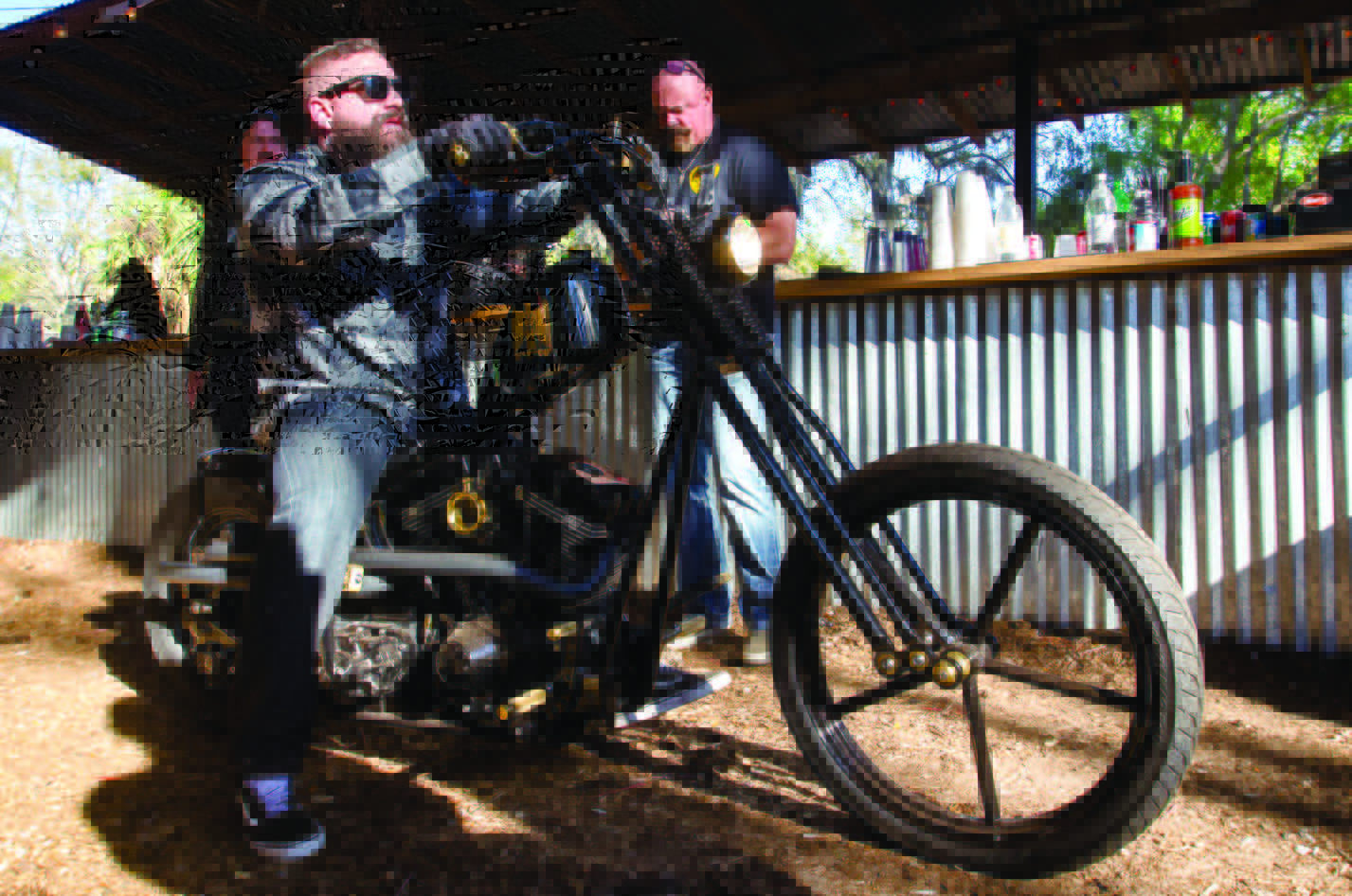 It is hard to explain the feeling one gets seeing 100-year-old motorcycles thundering past in a pack at over 80 mph—it never ceases to amaze me. The 45” class made the race accessible to more people, thanks to 45s being more affordable and easier to find than boardtrack-era racers as well as simpler to ride. With additional practice open prior to race day, we found out our pal Josh Owens, of the show Moonshiners, suffered a nasty spill that put him in the hospital with broken ribs, a tornup hand and a broken nose. Rumor has it that all he wants to do is heal up and get ready for the next Sons of Speed in Sturgis. That crash during practice runs didn’t take any speed off the racers, though. They battled it out in every heat and every class. The finals were blisteringly fast in the Hot 61” class. Matt Walksler (Harley) walked away with the Bill McCann custom trophy, and eBay Jake (Harley) found second place, with Brittney Olsen (Harley) finishing third. The 45 Shootout saw Doug Young (Harley) winning out over Brittney Olsen (Indian) in second place and Go Takamine (Indian) in third. The early 61” boardtrack bikes that hadn’t been hopped up featured Ken Curtis (Harley) in first, Shelly Rossmeyer-Pepe (Harley) in second and Rick Petko (Indian) in third. You can be sure many of these racers will be in Sturgis at the Full Throttle Saloon, discovering what they can do with these bikes on a banked dirt track. As Daytona came to a close, it seemed obvious to me that the custom world of motorcycles is thriving—maybe not in numbers, but in passion. There were more custom bikes than ever wherever you looked and riders who lived the culture through and through. The weedingout process has begun, and you can bet that next year the bikes will be even better in Daytona.