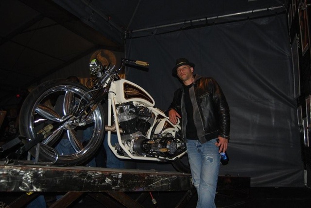 Hosted by Ami James, Christian Clayton, Bruce Rossmeyer and Billy Lane, this year’s Biker Fusion featured custom bikes, industry celebrities, a photography exhibit by Michael Lichter and Josh Kurplus, a bikini contest and live auction. Daytona’s unofficial “Mayor” Rossmeyer welcomed everyone to Daytona and Industry notable Bert Baker recognized and thanked all of the sponsors. , Sgt. 1st Class Toby Nunn spoke on behalf of all of the soldiers and heroes Soldier’s Angels supports. Then Ami James and Russell Mitchell took on the roles of Auctioneers and raised thousands of dollars in the live auction of custom skateboards by Buck Wild and Hard Rock Fender Guitars specially designed by the Billy Lane and Ami James. Throughout the evening, Biker Fusion message cards with an image from renowned photographer Michael Lichter were available in exchange for a donation at any level, and supporters were encouraged by Christian Clayton to write notes to the troops that would be stuffed in backpacks being sent to Afghanistan