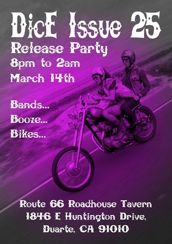Well here it is, the issue 25 ( blimey! we made it, how good is that?! ) release party, right here in LA. Its a fantastic bar, old style, on route 66, loads of parking, bands, beer, bikes, djs, etc and a Sunday hangover ride too, not sure where we’re going yet but somewhere really good, erm, yeah, really good. Issue 25 is very special to us, we have added an extra 32 pages to this one so its almost like a book and we have a suprise for the front cover too, thats all I’m going to say. All right, it involves crayons, that really is all I’m going to say now, bloody hell!!!!
