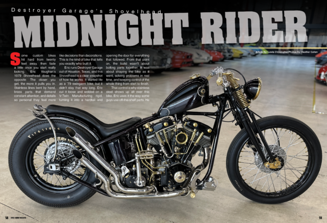 This isn’t just a showpiece. The Eric Vaughn Texas Shovelhead chopper carries a story that goes beyond the shop.