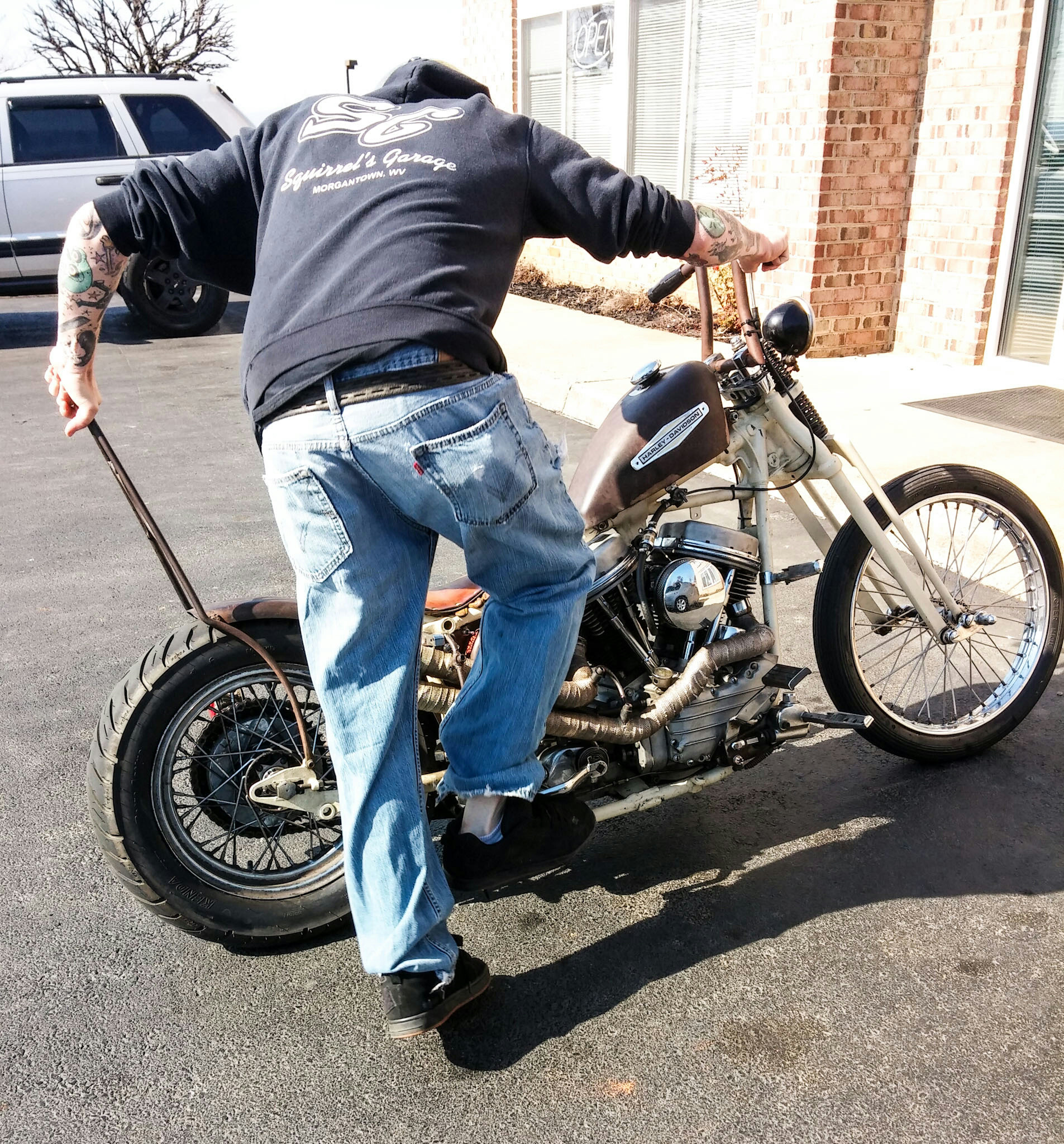 Got a visit from a fellow Chopper Jockey today! While the envy in my eyes were apparent from behind my desk, the joy of seeing my buddy Kevin kick his Pan to life tells of the adventures ahead. Spring has sprung and the riding has begun.