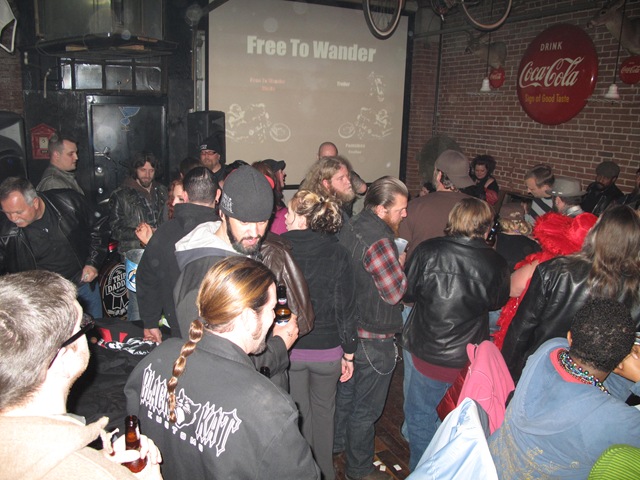 house was full. Pretty much asses and elbows. Many of the guys that appeared in the film were present, from Chicago, to Los Angeles To as far north as Canada. The Free To Wander release party was a continuation of the the films sentiment.