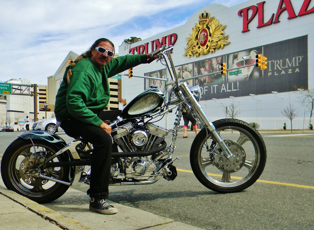 I ride a rubber mount bike with a swingarm because I put a lot of miles on and I like comfort and handling. Being that this was a custom chopper with a beautiful handtooled leather seat with no padding, I thought it would be only nice for a bar hopper. I was wrong. That first day I was in the saddle about 7 hours. It really was comfortable. I rode a lot of mixed conditions- I hit traffic and I had some open highways, back country roads and even some residential side streets. It was a dream to ride all those conditions. I wasn’t expecting to be enjoying it so much that I would want to ride another long day again the next day. No only did I but I opted for an even longer day and went about twice as far. On the second day I took the bike south down the Garden State Tollway to Atlantic City and after stopping just long enough for a couple pictures, I blasted into Philadelphia. I wanted to get back to NYC early so I only stopped for gas and then rode straight back to the city. The power on the bike was incredible and the nimble handling made weaving in and out of traffic fun. Just ask my friend who saw me in South Jersey but despite his attempt to catch up with me, he couldn’t even get close. He texted me or I would have never known.