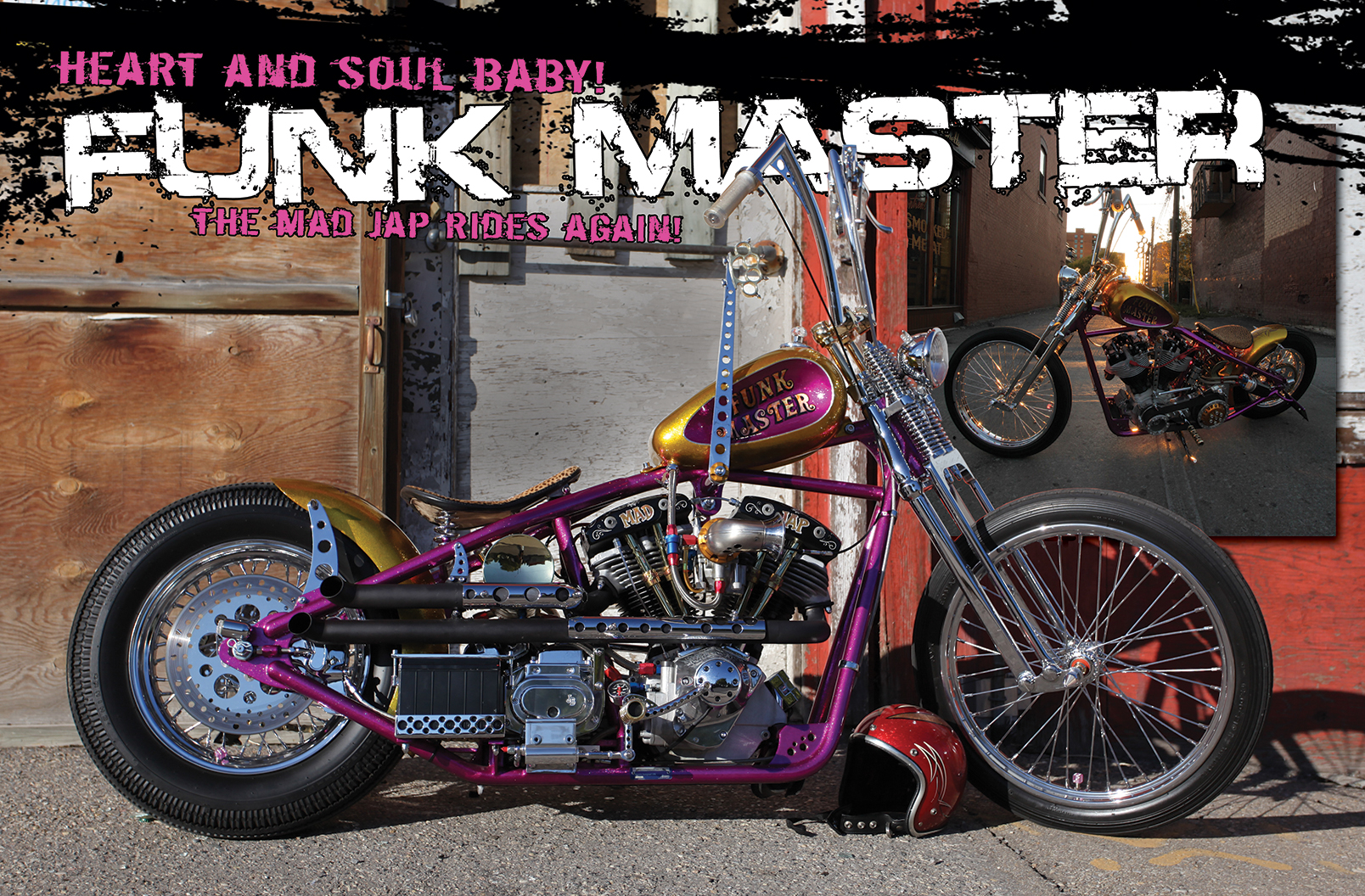 Mad Jap was up and running but the hard times were far from being over. In 2008, Dale was hit by a car and left paralyzed. His back was broken in three places, his pelvis in four and his left leg was severely disfigured. He spent two weeks in intensive care in a coma and came home months later unable to walk, unable to build a bike. At the time, he had deposits on six bike builds that he had to refund and nearly lost everything in the process of rehabilitating himself. He got to the point where he had sold everything and was at the end of his rope. Sitting around in a funk, he realized that he had to build another bike, he had no choice. The prospect of doing the work from a wheelchair was hard enough, propping himself up at the lathe or the mill was another thing entirely, but doing it all with no idea what was going to happen to his future, well that is the thing heroes are made from. As he was nearing the end of that build, another customer came in with a deposit. It would give Dale enough funds to keep going with Funk Master and keep the doors open. Another came after that, and after Funk Master made its first showing, more orders came in and they never stopped ever since. The only downside it seemed he had to deal with from those days was when he went to turn in the wheelchair, once he no longer needed it. The company refused to take it back and charged him for its replacement. Apparently, overspray from his metallic paint and the wear of it being in the shop just didn’t fit their needs as well as it did his.