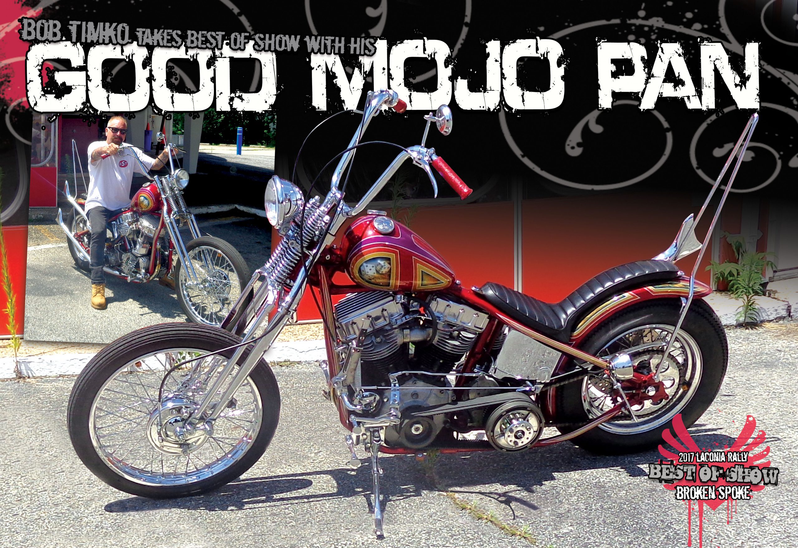 Bob finished up the Pan project in 2016, just in time for Panstock, where, in a very stout group of Panheads, it took home the award for Best Pan. It was definitely a good mojo win for Bob. You see, he and Richie Pan had known one another since before Richie started tattooing. Bob was especially proud of the trophy he received that day; 47 Industries had built it from parts straight out of Richie Pan’s own shop! That same summer, he also won Best of Show at the Cycle Source bike show at the place that started it all, Laconia Motorcycle Rally & Races! It is with a heavy heart that we tell you Bobby passed away in December due to complications from surgery. His lifelong friend Paul Bruno, shared the story of their beginnings with us. It started like this: 40 years ago, when I was 17, I started working at Midas Mufflers in East Brunswick, NJ. I was a little intimidated working with a group of guys older than I, but I was confident in my work due to the fact I had been working on anything and everything that had a motor for a few years. I met Bobby Timko when I started at Midas and we clicked immediately. The first thing he said to me was “Good to meet ya man, I want to wrestle you.” Seemed strange to me, but he was the next youngest guy there. He was 4 years older than me so I just said, “Let’s go.” Well, I pinned him, and I guess gained his respect and from then on we were best friends. Even better, we were more like family! We spent Holidays,vacations, road trips and bike weeks together. We went out to eat at least once a week. Every time we got together, it was inevitable that we would get to the subject of motorcycles. 90 % of what we did revolved around the motorcycles. What do you think if I changed this or that? And it went both ways. 40 years is a long time to have a friend like that, one that you talk to every day. Bob had been looking forward to seeing his bike grace the pages of Cycle Source Magazine. He showed what would be his last project, at Cheap Thrills and the Harley Rendezvous. In his honor I’m proud to be putting two of his bikes in both shows for him. Bob was proud of his accomplishments and I know he’ll be watching over his bikes as others appreciate his hard work. He was one of the hardest workers I know, wanting to provide for his wife Larisa, son Rob and daughter Jessica. I’m blessed to have called him a friend for most of my life. RIP old friend and see ya in the future. I miss the hell outta ya! Paul