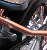 springer front end leg conversion The Springer Front End Leg Conversion was created specifically to replace the front leg on your DNA or Hard body Springer Front End. Its CNC radius cut lines offer a unique custom look along the top of the fork leg and CNC machined indents as well as front speed hole create an entirely different and much sleeker appearance. Installation of the Springer Front End Leg Conversion is very simple for a competent mechanic. The conversion comes in raw steel, chrome, copper, gold, brass or nickel plating  and can also be special ordered in ball milled and twisted. Copper Mike’s Springer Front End Leg Conversion is available online at www.gravesendcycles.com starting at only $195.