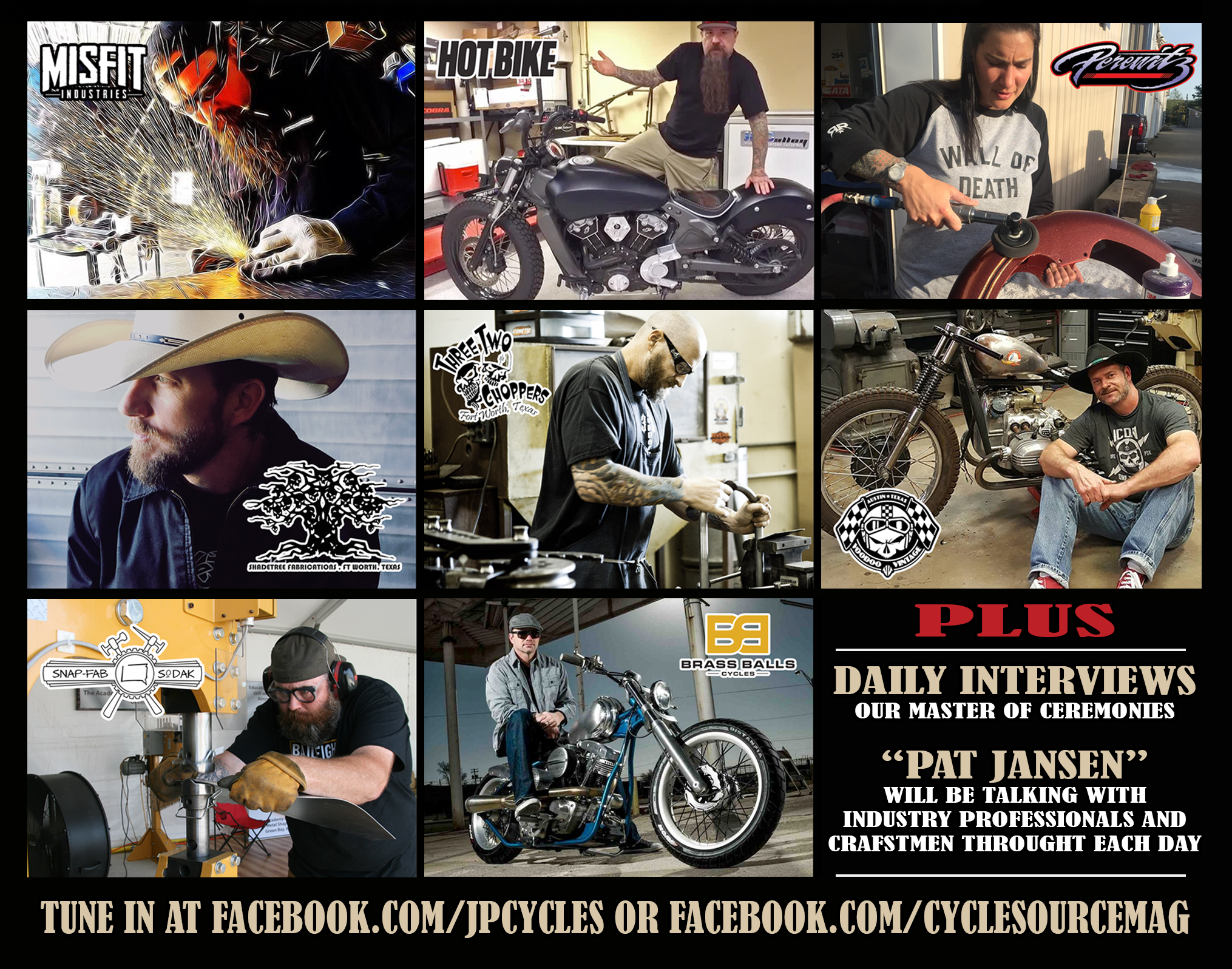 A live FaceBook stream will make all of this available each day to anyone who can’t make it to Austin through the J&P Cycles and Cycle Source Magazine social media feeds. The Participants that have been assembled and schedule for appearances are as follows: