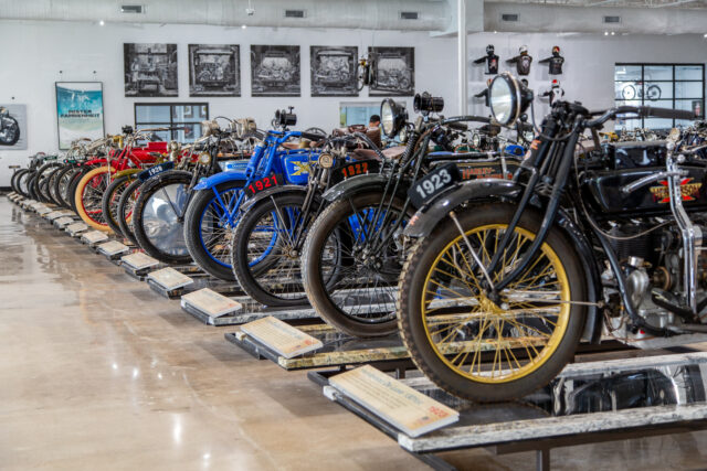 The 25,000-square-foot Haas Moto Museum showcases 230 motorcycles spanning 125 years.