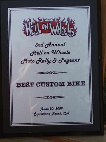 What’s not to like, beautiful weather, great friends and taking a wild ride up the Ortega Highway. We left Lake Elsinore and proceeded to make the radical climb through the mountains to beautiful San Juan Capistrano.  We made it to Coconut’s, the place was packed! Loser Machine, H/H, Dice Magazine and Zach and Scott from Choppertown Nation were all are showing their wares. The pin-up contest didn’t disappoint, the bands were great and the bartenders kept everyone happy. All in all a great day, that was made even cooler as Duane took home the  Best Custom Bike award.