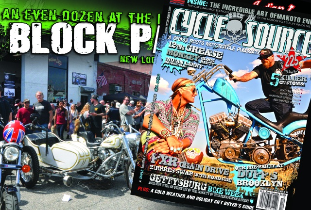 Oh yeah, this is a motorcycle magazine ain’t it…So of course we featured five killer customs including a killer ’41 Flatty, a “Red Snapper” sporty, an FXR and a Triumph, and last but certainly not least, The Hippie Chick Pan owned by Clinton Wallace which can be found on this month’s cover cover.