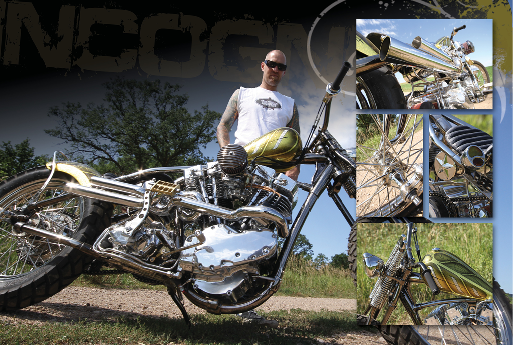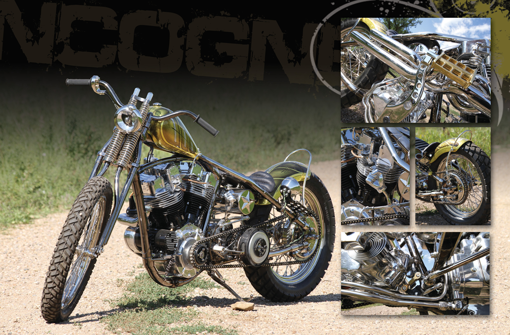Such is the case with Paul Wideman of Bare Knuckle Choppers and the bike you see before you. I’ve known Paul for quite a few many years now and I’ve watched as he has grown into a solid fabricator, then into a talented craftsman. He has built one amazing bike after another, each an example of the level his skill and attention to his craft were at during that time. His bikes have always I captured the attention of the crowds and the magazines alike, but when it came to his latest build, “Incognegro,” I believe he has broken through to a new level.
