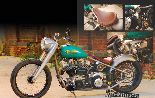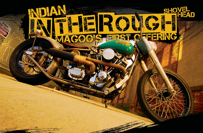 When I first met Magoo, he was wrenching for Bill Dodge at his joint in Farmington, New Jersey. He was a quiet sort of cat at first but over the past few year I’ve come to know him as a true king of the one-liner. Since then he’s also gone off on his own to form Magoo’s Motorsickles and has started to build some wicked cool stuff with soul. This Shovel is just such a bike. You might think that by its rough, ridden appearance that it was constructed to appear like a tough bike, but that’s not true. Actually, the bike was originally intended to be a shiny bike but unending admonishments from Charlie Ransome would put that idea to rest. You see, Magoo acquired this sweet Indian Warrior tank and once Charlie saw it, he told him that it just couldn’t be painted, no matter what.