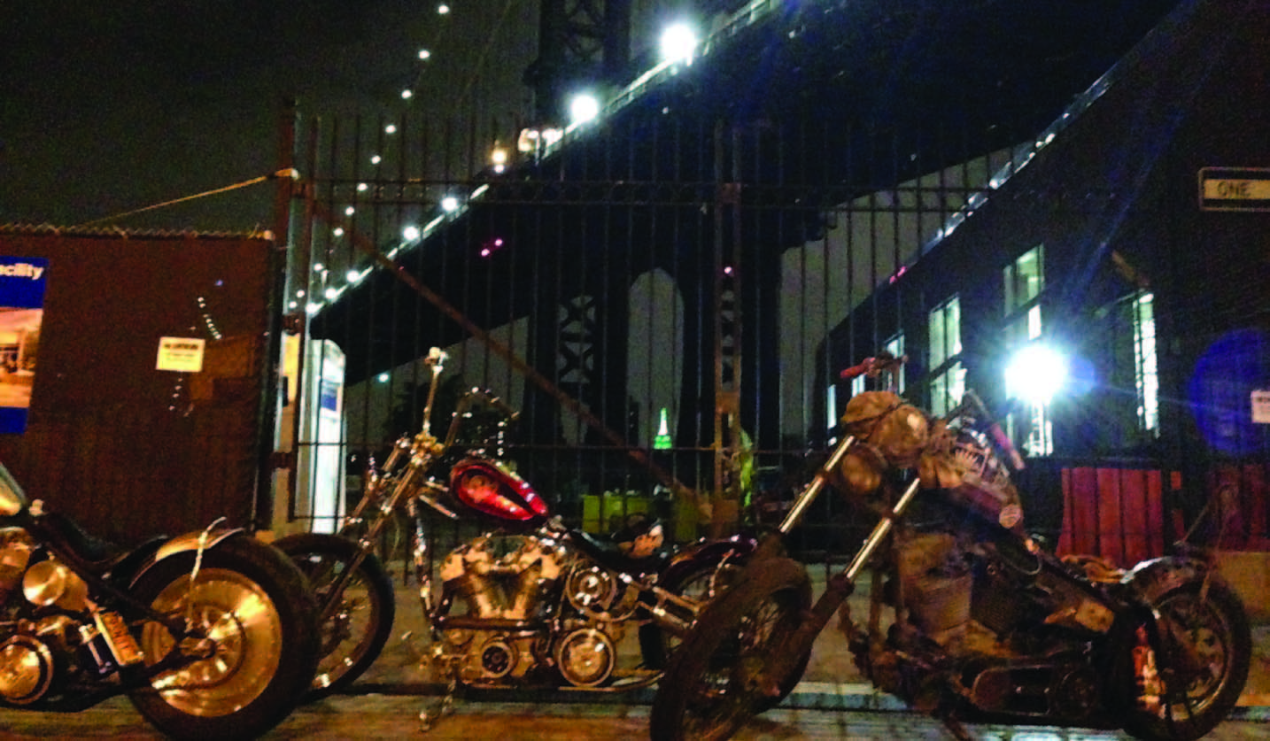 Once I arrived in Brooklyn, I knew the week ahead was going to be non stop. You see, rolling with Bobby isn’t an easy task, your days are spent, moving and shaking on the front lines, getting shit done, 20 hours a day, everyday. If Bobby is ready to tear up Manhattan at 3 in the morning, you’d better be ready to ride. Hanging out at Indian Larry Motorcycles is a wonderful thing. First, you get to watch all the pretty girls walk by the shop, sometimes you get to enjoy a good NYC bagel while sitting outside the garage, John had a term for that, but I can’t say it.