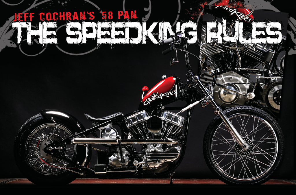 Jeff Cochran has done just that with this Pan. When I first saw the pics of this bike, I was jealous. It is flawless. The bike is so simple, yet so beautifully detailed; it’s perfectly executed. I think one reason Jeff hits the mark every time is that he takes a very cool approach to building his bikes. It seems like he builds the entire project in his head, oftentimes on a long road trip, and then once the process is in motion, it doesn’t stop until the bike is on the floor, idling, ready to rip up the highways. He’ll tell you that he can’t sleep while it’s going together, waking up periodically to write an idea down, or just not sleeping at all because one little piece is a shade off perfect. It bothers the shit out of him: perfectionist. This ’58 started its new life in the hands of Tim Anding of Papa Clutch in Iowa.  T i m and Jeff did a little bartering while in Daytona, and this freshly rebuilt Pan is the booty Jeff walked away with. The motor had been completely gone through by Tim’s motor guy at F&J Racing, and was set in this old butchered up Shovel frame awaiting its new lease on life. The CCE Pan covers always look great, especially after the added love Jeff and his buffing wheel contributed. The only real change Jeff made to the engine was swapping out for a set of solid lifters, giving him a little less valve adjustment in his future. Not much more was needed to finish off the motor, save for the Mallory Unilite ignition and the S&S Super E carburetor. Never leaving well enough alone, Jeff went after the cases with a pack or two of sandpaper, wet sanding till his fingers were raw. The nasty cam cover received the same treatment, being brought to its lustery, life from an oil drenched, porous existence. And the badass pipes were of course done by Jeff, with the rear pipe disappearing into the front. Jeff took a couple swings at the design before he was completely happy with the result, but he says it was well worth the effort. The two into one gives the motor a crisp, snappy sound, and the throttle response is the same; form and function, folks.