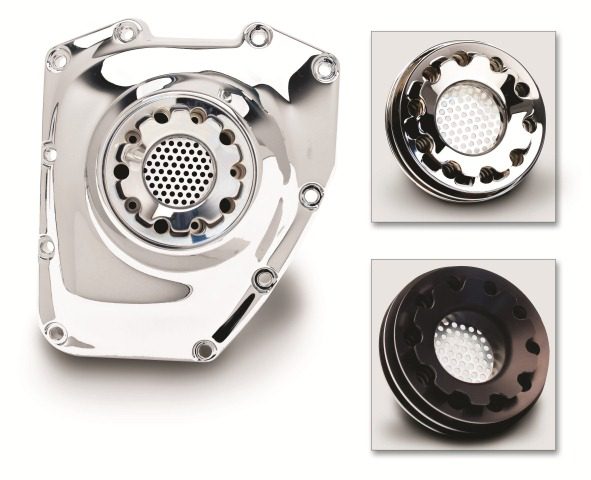 The patent pending, JIMS® Cam Cover Heat Sink is designed to help reduce running temperatures of high performance, big inch motors that often run hotter than smaller, stock displacement motors. JIMS® and Cornerstone Metrology teamed up to integrate a cool looking “fin pack” design into a stock cam cover insert that when riding, uses the cooler outside air to help reduce cam cover temperatures. Installation uses the existing timing cover hardware and only takes minutes. JIMS® Cam Cover Heat Sink is manufactured from top quality aluminum here in the USA and is available in Chrome Plated, No.2311 or RawCut Black, No.2303 and ranges in MSRP from $74.10 to $98.50, depending on finish. For more information find us on the web at www.jimsusa.com, become a JIMS facebook fan, or call 805-482-6913.