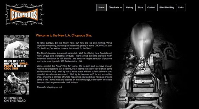 Respected custom motorcycle builder, L.A. County Choprods, has amped up choprods.com with a new store, a vast gallery of custom bike construction and a Blah Blah Blog. Parts featured in the revved up online store bring the same design philosophy and quality craftsmanship found in their one-of-a-kind Choprod bikes. The site also has exclusive access to ISR Brakes, of which L.A. County Choprods is the exclusive North American distributor.