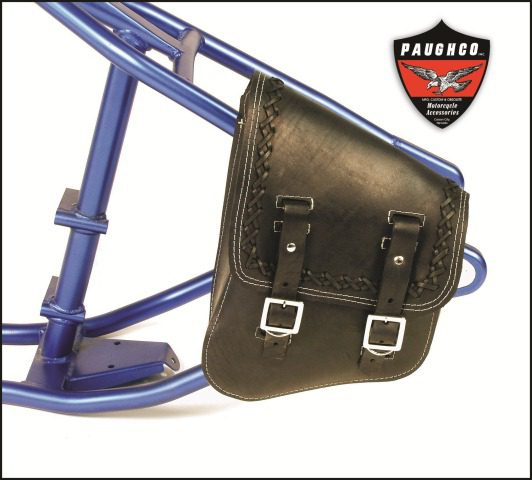 Paughco’s “LaRosa” design SOLO SADDLEBAGS make a slick and functional addition to just abut any real world scooter. As classy in appearance as they are functional the Paughco bags are hand cut and stitched from the finest heavyweight leather. Designed for mounting to the left side frame rails on both rigid and softail machines they are fit with rugged strap and buckle closures and measure 10” W x 7”-14” T x 4” D. Paughco retails their rugged SOLO SADDLEBAGS for just $173.95. Call Paughco direct at 775-246-5738 or catch them on the Web at www.paughco.com
