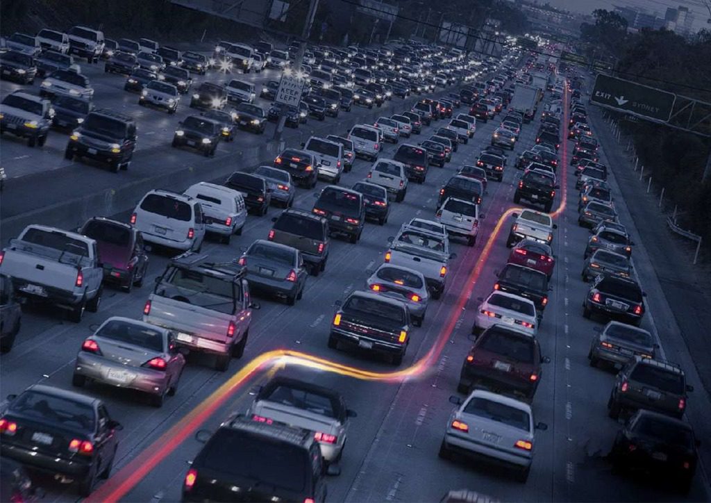 According to the California Highway Patrol, lane-splitting occurs when a motorcyclist rides between lanes of stopped or slower-moving traffic or moves between lanes to the front of stopped traffic. The convention is recognized as a benefit to urban traffic flow because it allows motorcycles to make maximum use of roadways when traffic is stopped or significantly slowed. The controlled flow of motorcyclists through stopped traffic also permits more space for other road users.