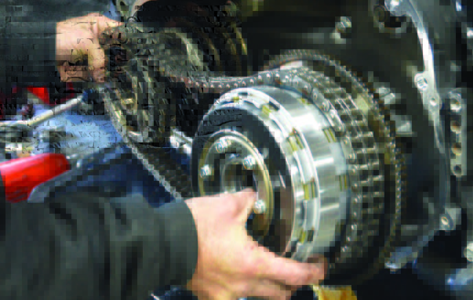 The compensator assembly, chain, and clutch are now easily removed from the bike as an assembly.