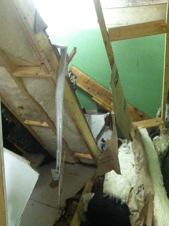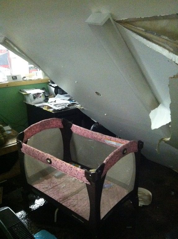 “It filled the office ceiling with water until it couldn’t handle the weight, and collapsed – ruining all of our office computers, printers, about 50% of our inventory and all of my baby girl (Rebecca) stuff that I keep at the shop. “You see, without my office and without the things for her, I cannot work at the shop. I bring my baby girl to the shop everyday, and keep her safe and sound in the office as I work. “![]()