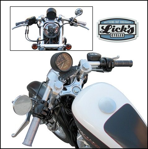 Always a cool source for “anything but ordinary” real chopper and café accessories, Licks Cycles has just released their awesome CLIP ON BARS to the public. Previously seen on Café style customs like the company’s show stopping “LC FUELIE” machine, these low down Road Race inspired bars provide a whole new dimension for today’s custom builders.