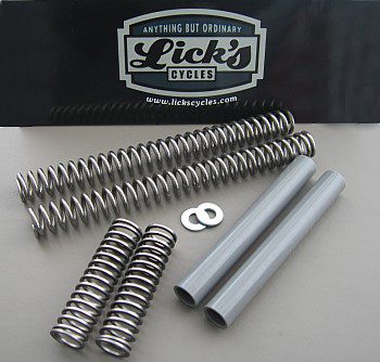 The Licks Fork Lowering Kit pulls approximately two inches out of the front end!! No disassembling of the forks or changing out of fluids. Best of all, the average guy can do this install in his garage with tools right out of his own toolbox.
